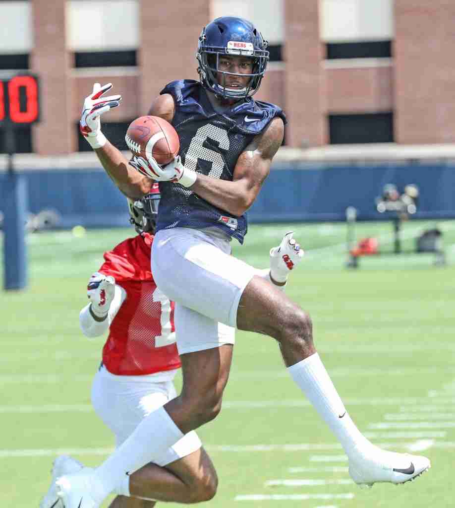 OXFORD, Miss. — At 6-foot-4, Miles Battle is the tallest of the Rebels’ wide receivers, and with a nice combination of size and speed, the redshirt freshman looks to stand out and help continue the rich tradition of Ole Miss “Nasty Wide Outs.”